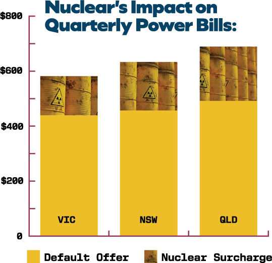 Nuclear will drive up everyone’s energy bills. The average Australian household would pay $590 per year more on their power bill with nuclear.